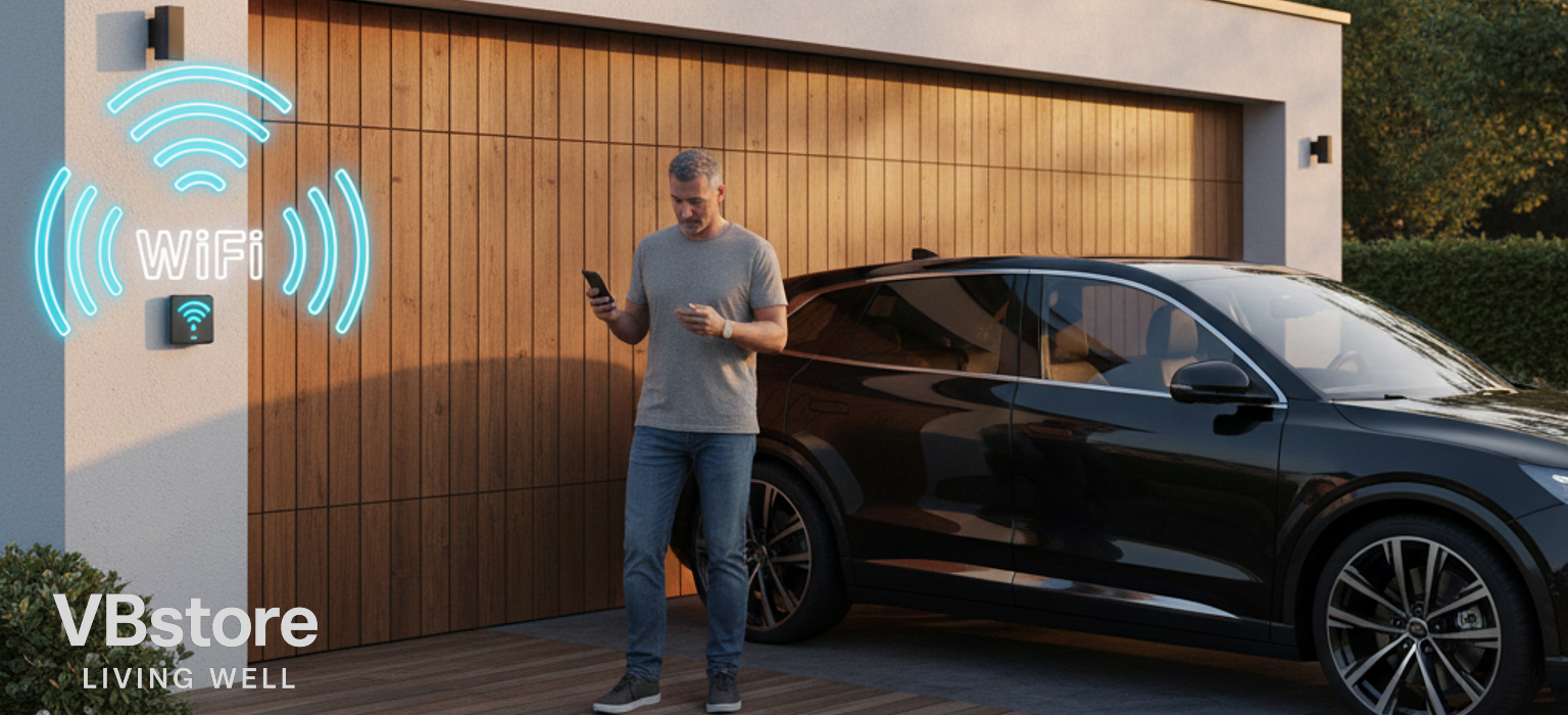 Μοτέρ Wi‑Fi γκαραζόπορτας για ανοιγόμενη, συρόμενη και οροφής πόρτα με έλεγχο από το κινητό.