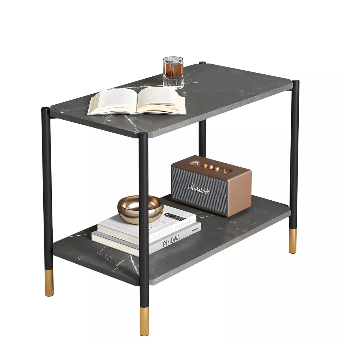 Τραπεζάκι Σαλονιού ArteLibre ASSA Γκρι Με Όψη Μαρμάρου MDF/Μέταλλο 80x40x55cm
