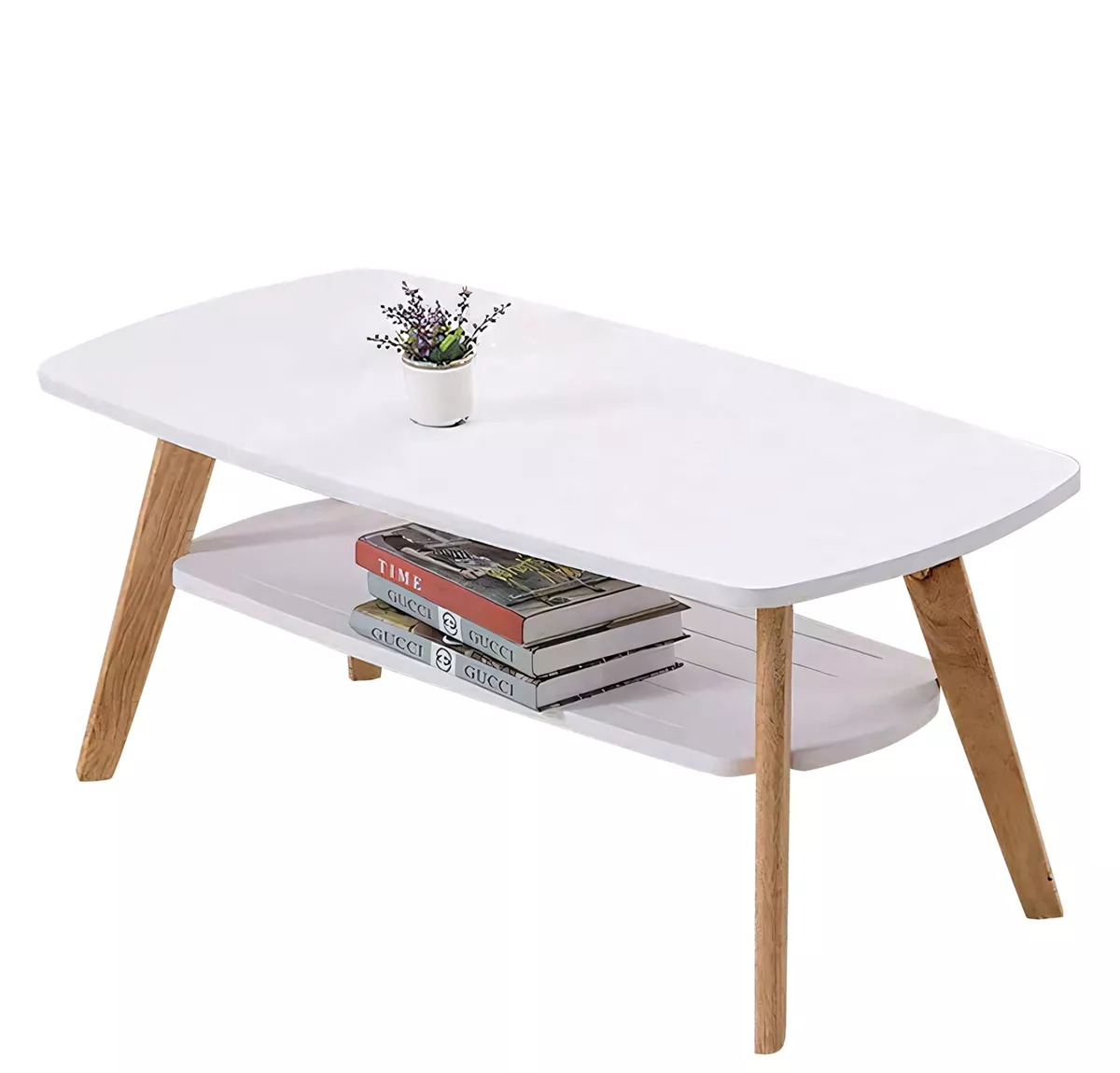 Τραπεζάκι Σαλονιού ArteLibre KHOBI Λευκό/Φυσικό MDF/Ξύλο 100x48x45cm