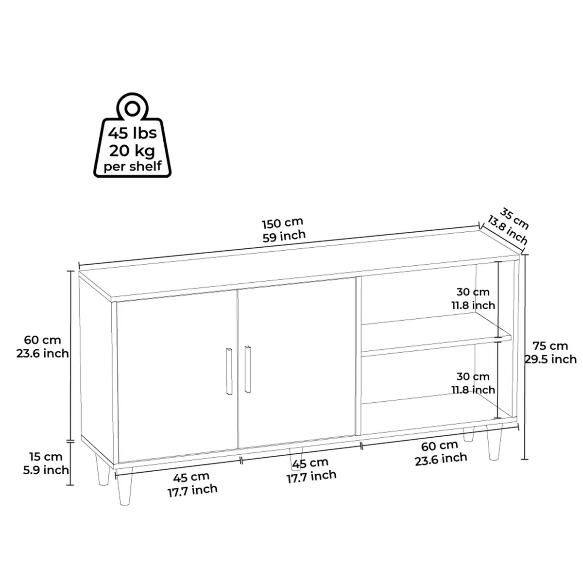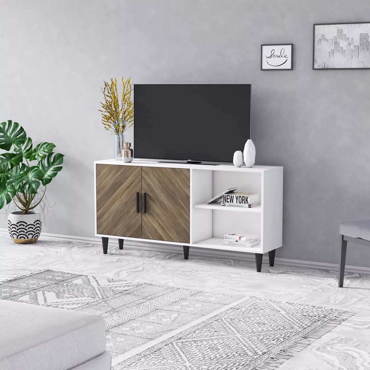 Έπιπλο Τηλεόρασης ArteLibre BERISO Λευκό/Καρυδί Μοριοσανίδα/Μελαμίνη 150x35x75cm