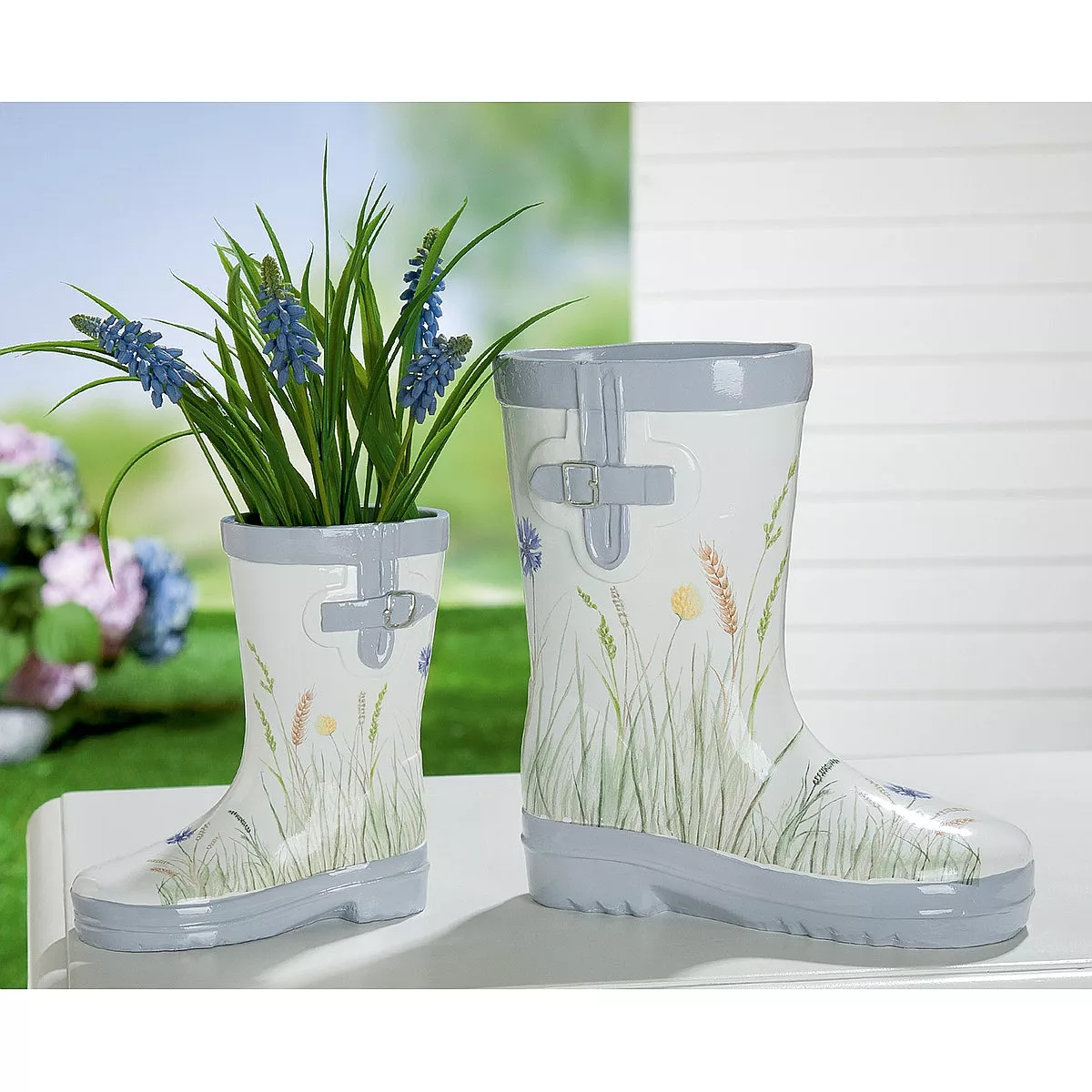 Κασπώ ArteLibre Μπότα Με Διακόσμηση Λουλούδια Λευκό Polyresin 11x22.5x25cm