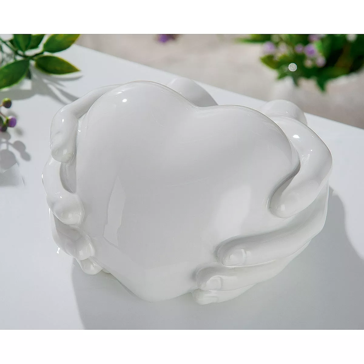 Διακοσμητικό ArteLibre Χέρια Κρατούν Καρδιά Γυαλιστερό Λευκό Κεραμικό 17x18x10cm