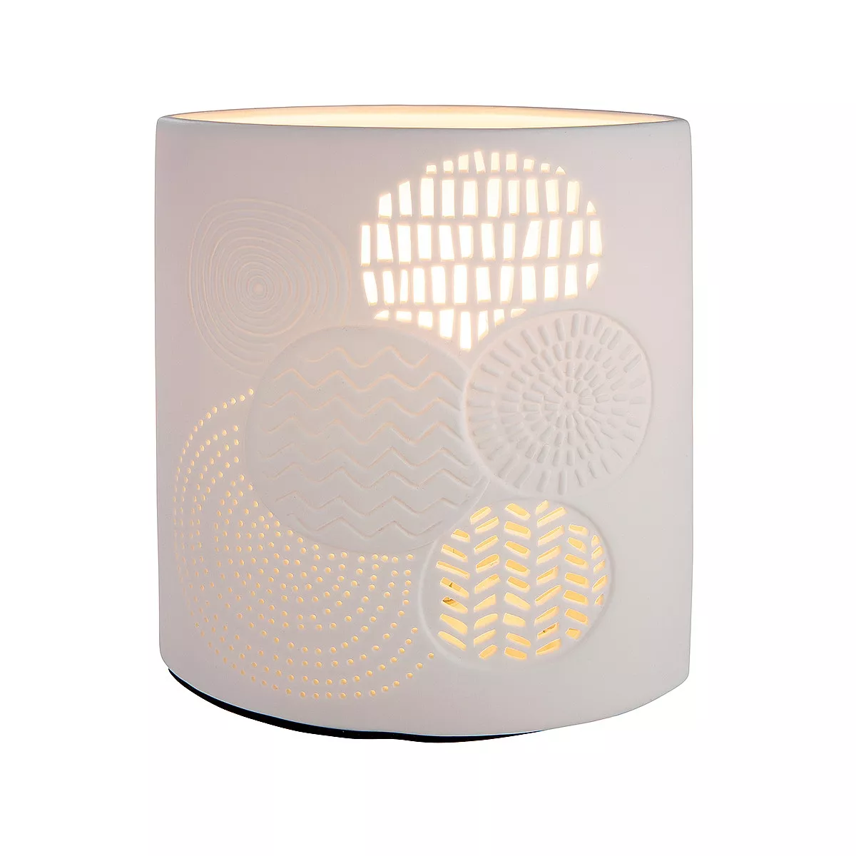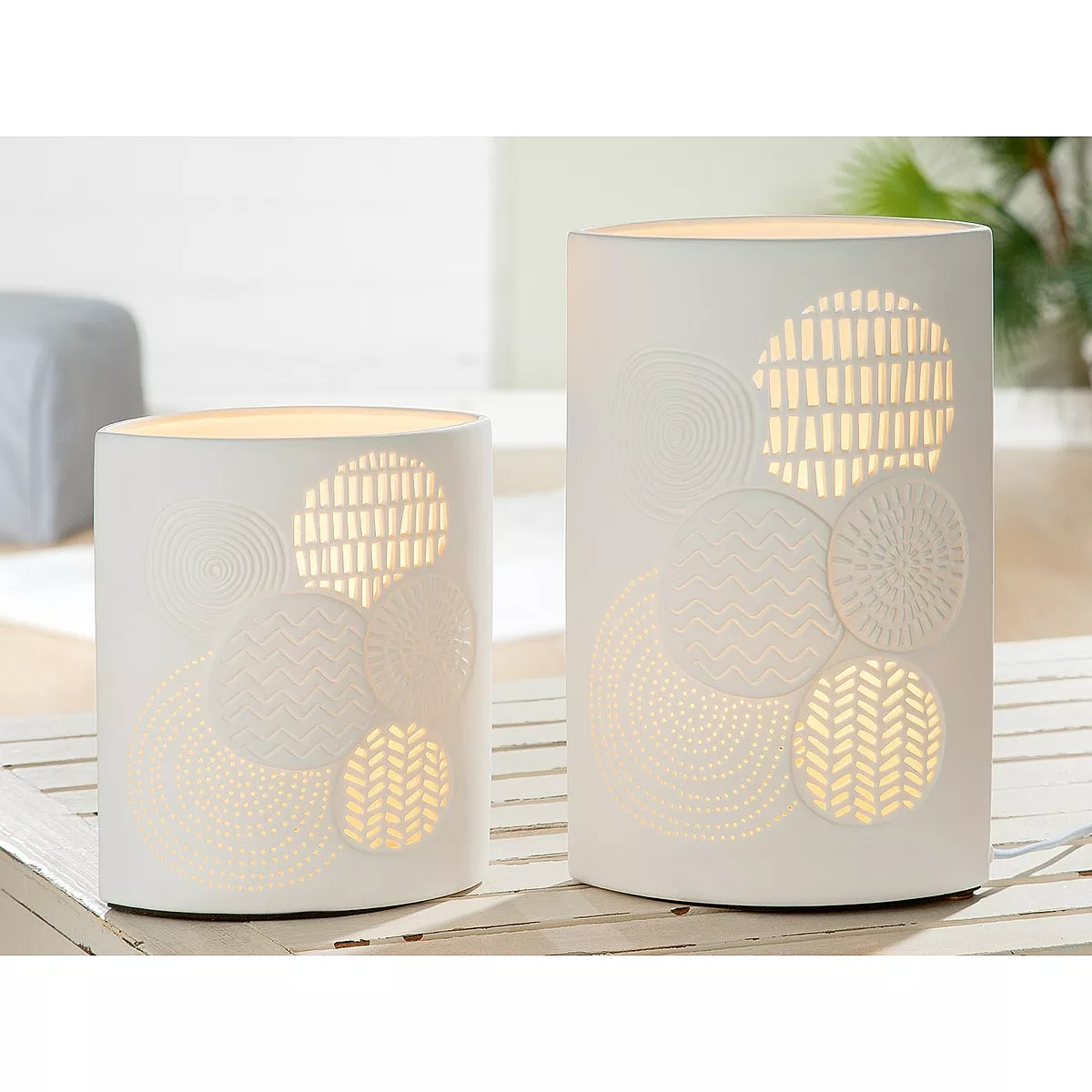Λάμπα Επιτραπέζια ArteLibre Εκλειπτική Με Διακόσμηση Κύκλοι Λευκό Πορσελάνη 10x17x20cm