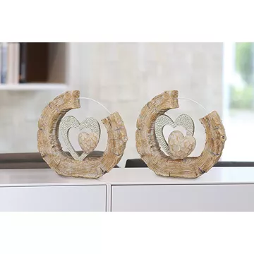 Διακοσμητικό ArteLibre Καρδιές Σε Κορμό Ξύλου Φυσικό/Λευκό Polyresin 4x19x17.5cm Σε 2 Σχέδια
