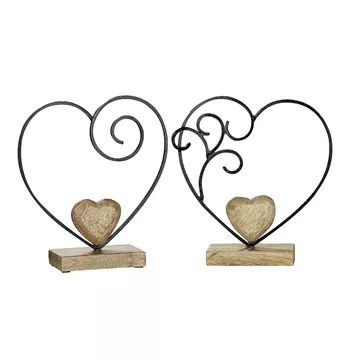 Διακοσμητικό ArteLibre Καρδιά Μαύρο/Φυσικό Μέταλλο/Ξύλο 7.6x24x26.5cm Σε 2 Σχέδια