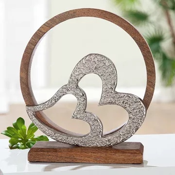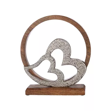 Διακοσμητικό ArteLibre Καρδιές Σε Κύκλο Ασημί/Φυσικό Αλουμίνιο/Ξύλο 5x24x26cm
