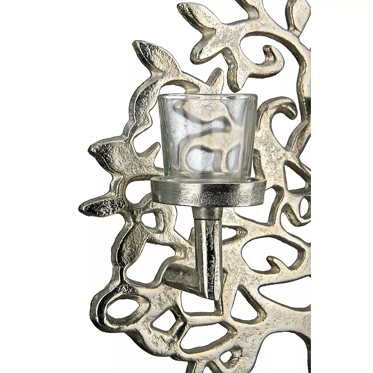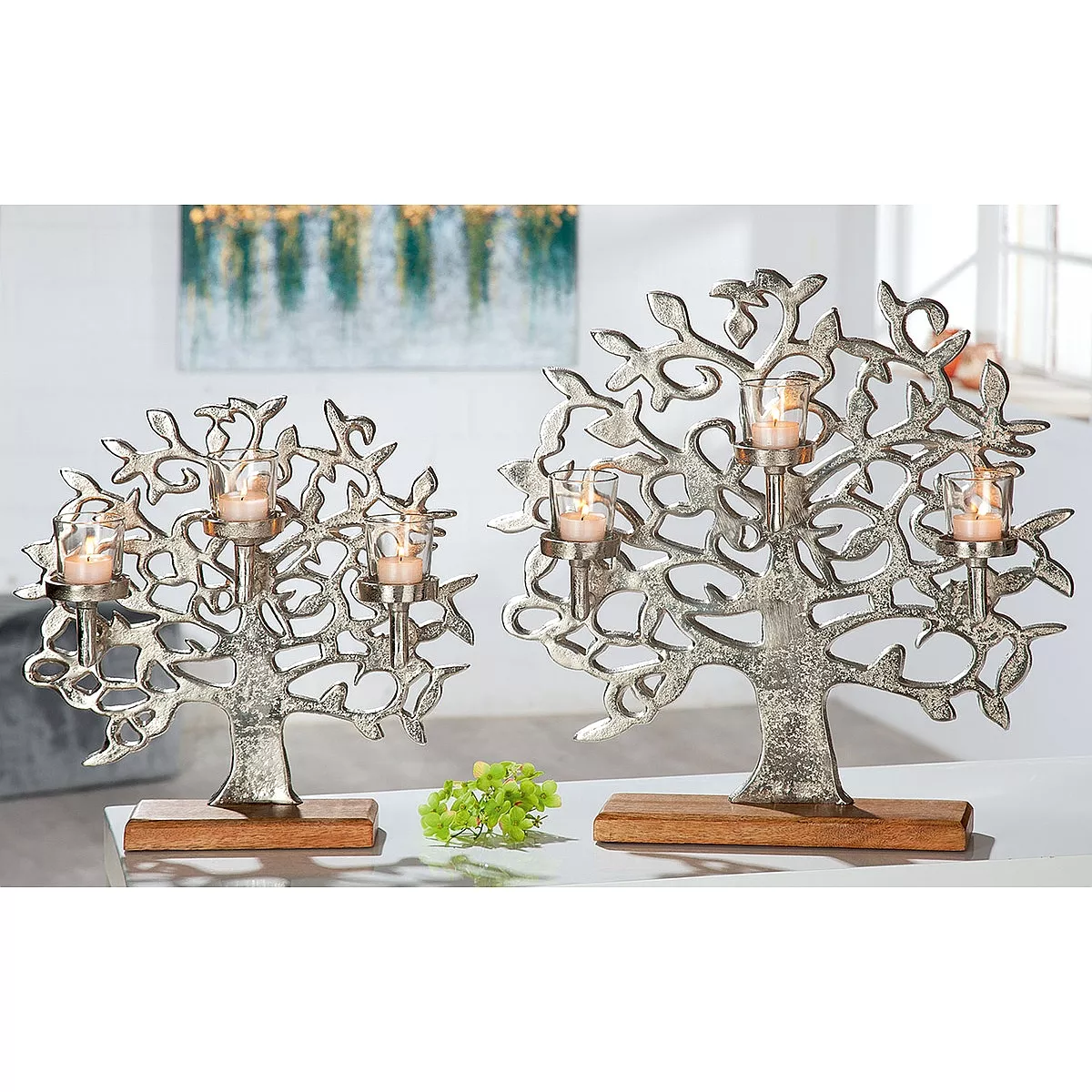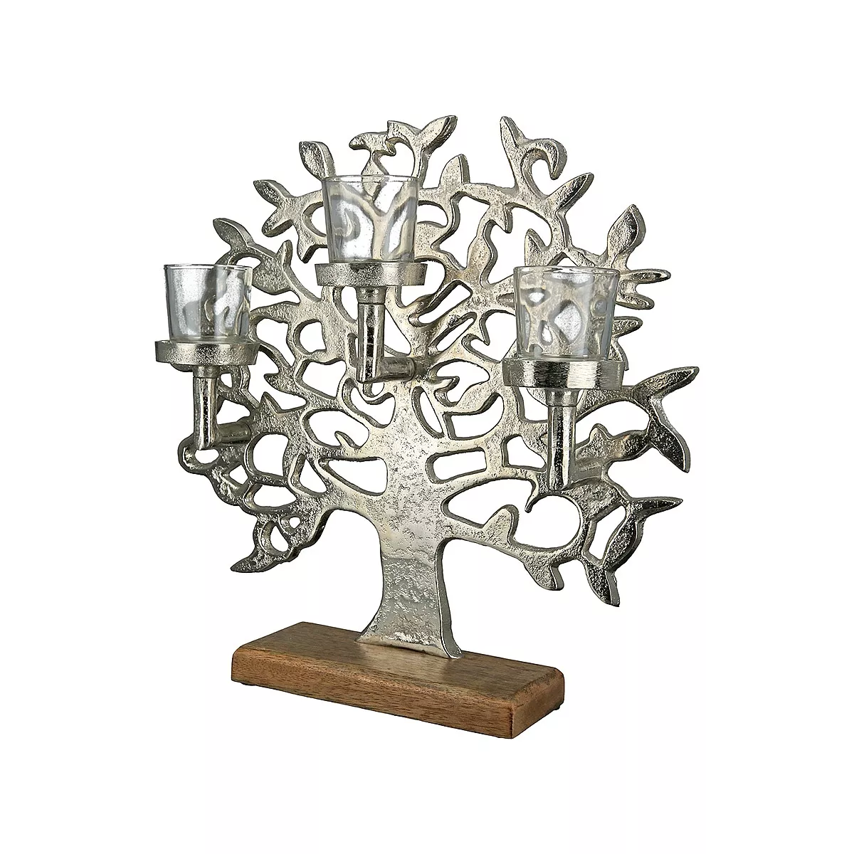 Κηροπήγιο ArteLibre 3θέσιο Δέντρο Της Ζωής Σε Βάση Ασημί/Φυσικό Αλουμίνιο/Ξύλο 11x36x38cm