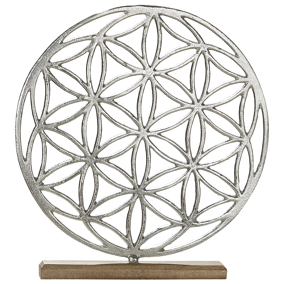 Διακοσμητικό ArteLibre Λουλούδι Σε Βάση Ασημί/Φυσικό Αλουμίνιο/Ξύλο 30x5x44.5cm
