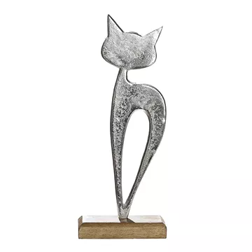 Διακοσμητικό ArteLibre Φιγούρα Γάτας Ασημί/Φυσικό Αλουμίνιο/Ξύλο 5x13x32cm