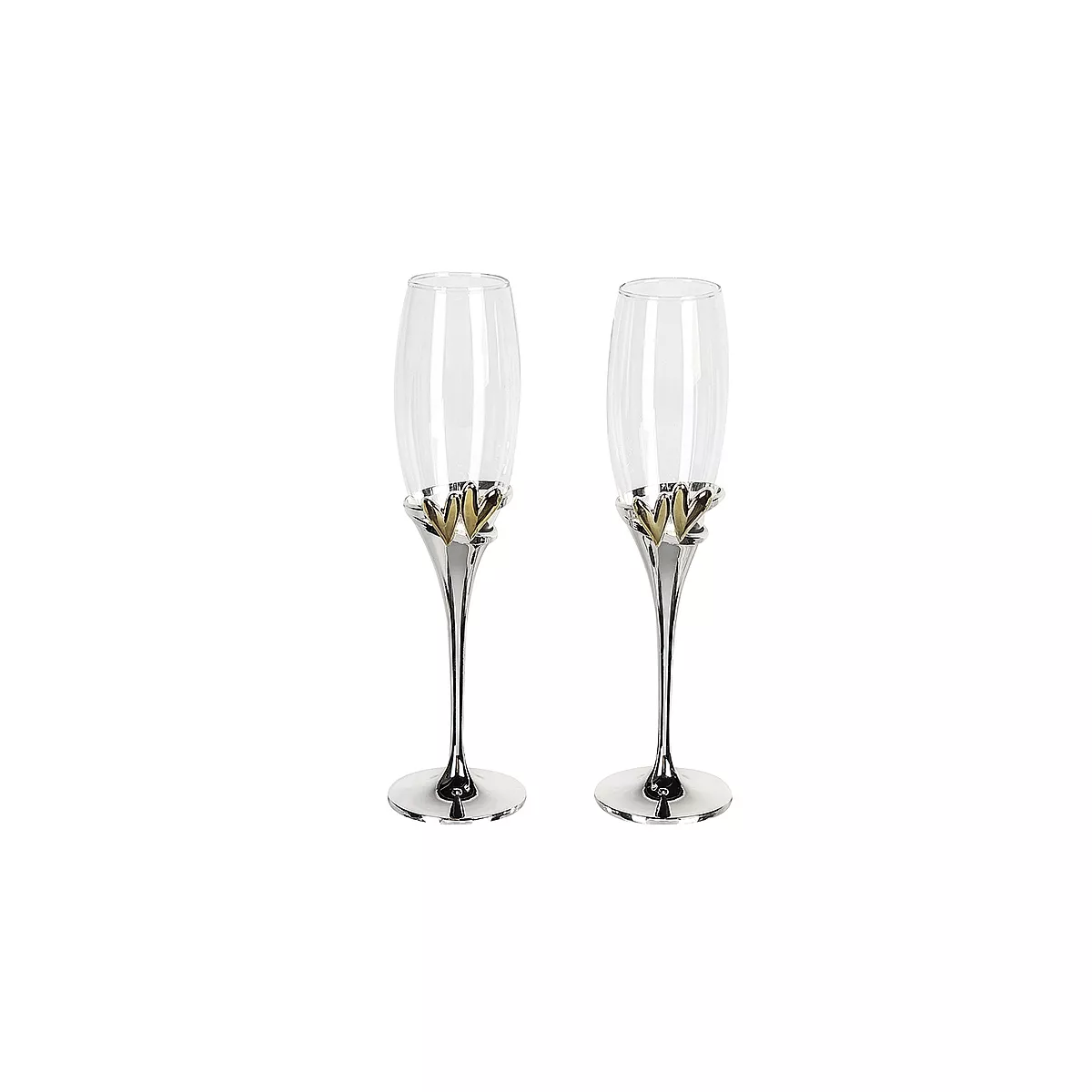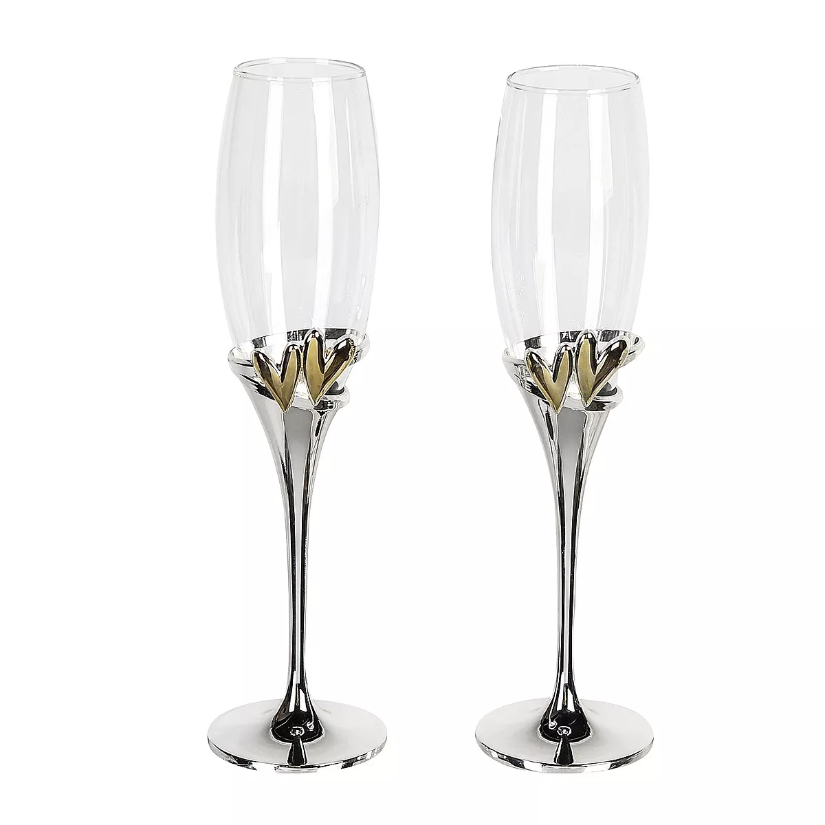 Ποτήρι Σαμπάνιας ArteLibre Με Καρδιές Διάφανο/Χρυσό/Ασημί Μέταλλο/Γυαλί 27cm