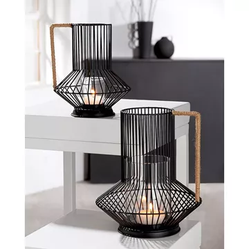 Κηροπήγιο Με Χερούλι Μαύρο/Φυσικό Μέταλλο 23.5cm