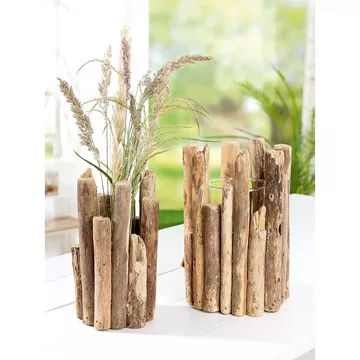 Διακοσμητικό Σύνθεση Βάζο Σε Ξύλα Φυσικό Ξύλο 24cm