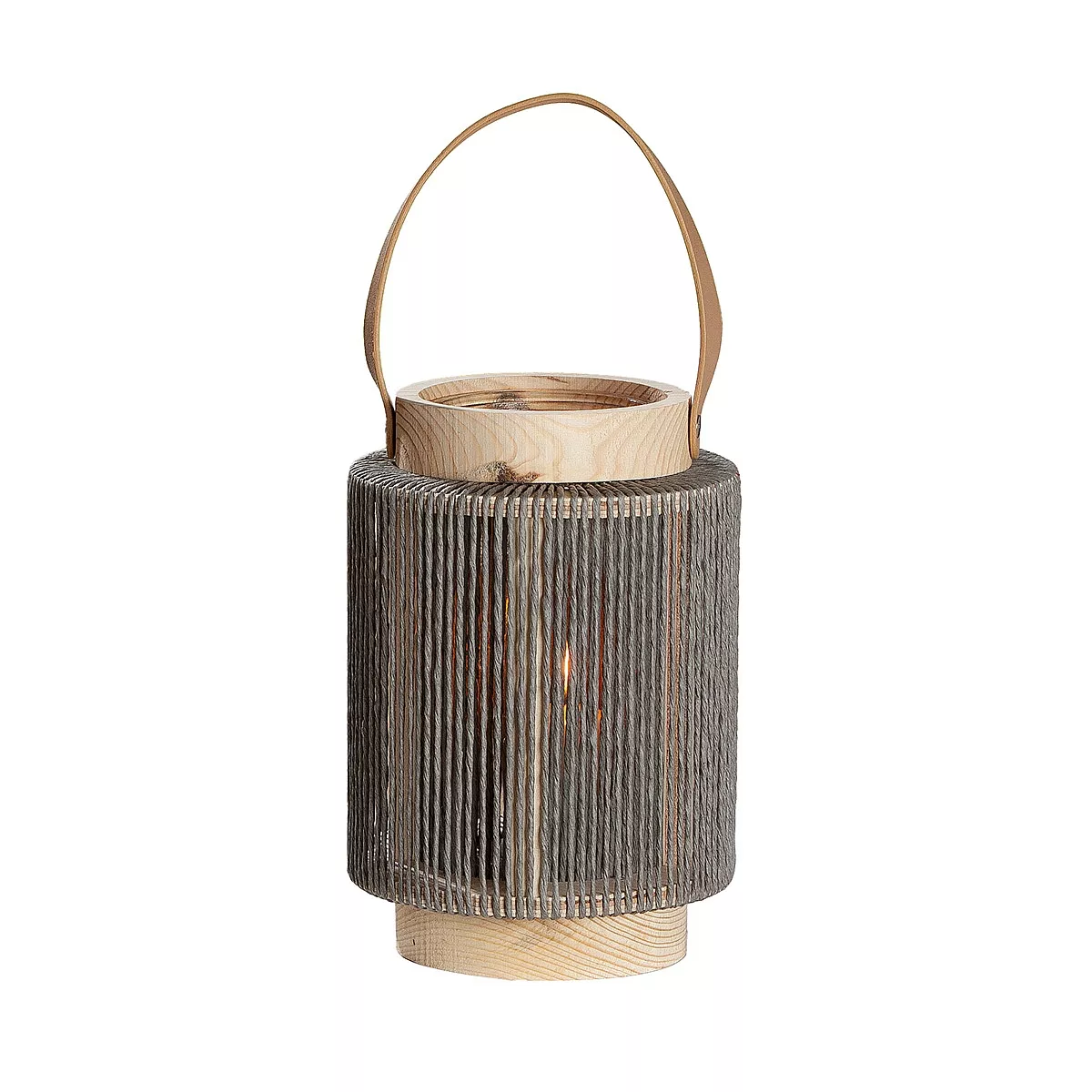 Φανάρι Κυλινδρικό Με Χερούλι Φυσικό/Γκρι Ξύλο/Γυαλί 23cm