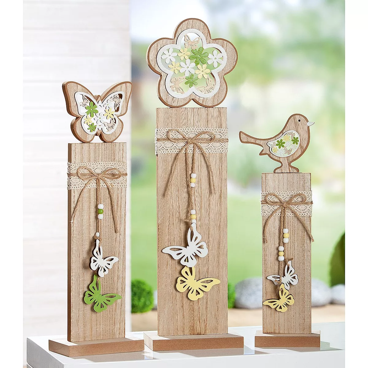 Διακοσμητικό ArteLibre Σταντ Με Πουλί/Λουλούδι/Πεταλούδα Φυσικό MDF 9x15x49cm Σε 3 Σχέδια