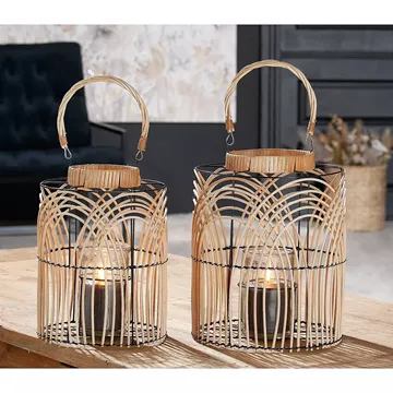 Φανάρι ArteLibre Φυσικό/Μαύρο Rattan/Μέταλλο 33cm