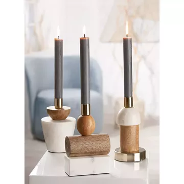 Κηροπήγιο Λευκό/Φυσικό Μέταλλο/Ξύλο/Μάρμαρο 9x10x16.5cm Σε 3 Σχέδια