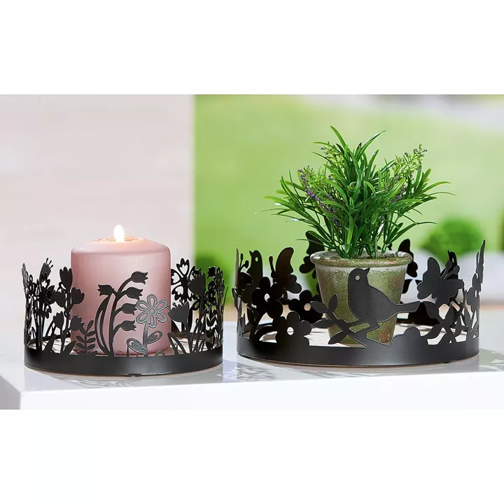 Βάση Γλάστρας ArteLibre Με Διακόσμηση Μαύρο/Φυσικό Μέταλλο/Ξύλο Φ20x9.5cm