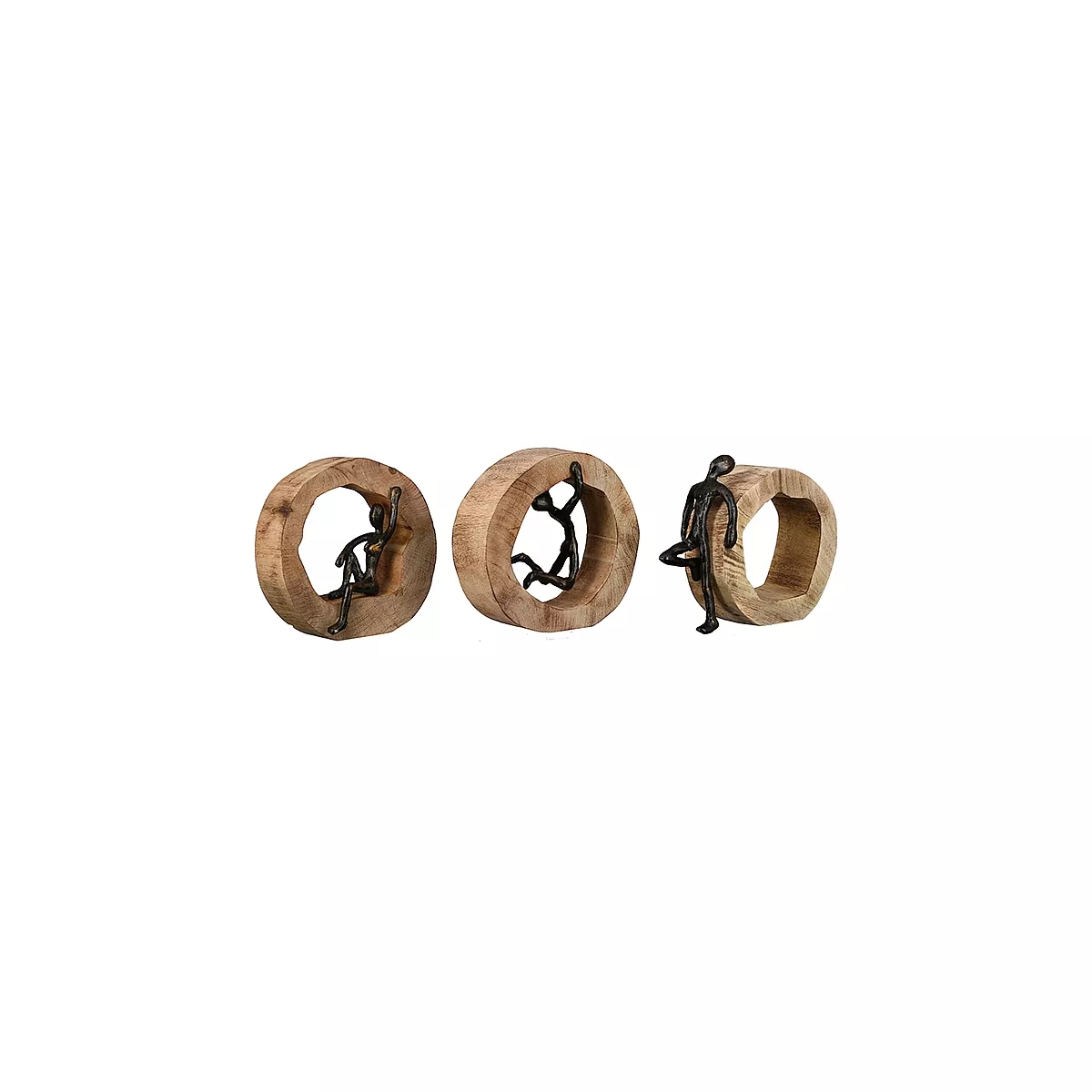Διακοσμητικό ArteLibre Φιγούρα Σε Κύκλο Μπρονζέ/Φυσικό Αλουμίνιο/Ξύλο 7x19x19cm Σε 3 Σχέδια