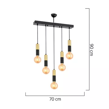 Φωτιστικό Κρεμαστό ArteLibre AQUILA Πεντάφωτο Μαύρο/Χρυσό Μέταλλο 70x90cm