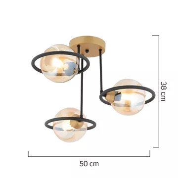 Φωτιστικό Κρεμαστό ArteLibre CAELUM Τρίφωτο Μαύρο/Χρυσό Μέταλλο/Γυαλί 50x38cm