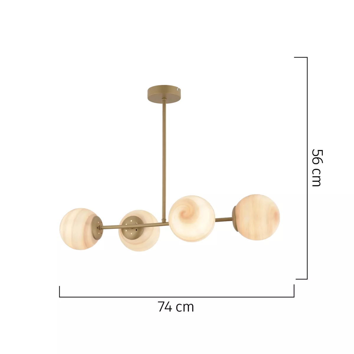 Φωτιστικό Κρεμαστό ArteLibre CHAMAELEON Τετράφωτο Χρυσό/Μελί Μέταλλο/Γυαλί 74x56cm