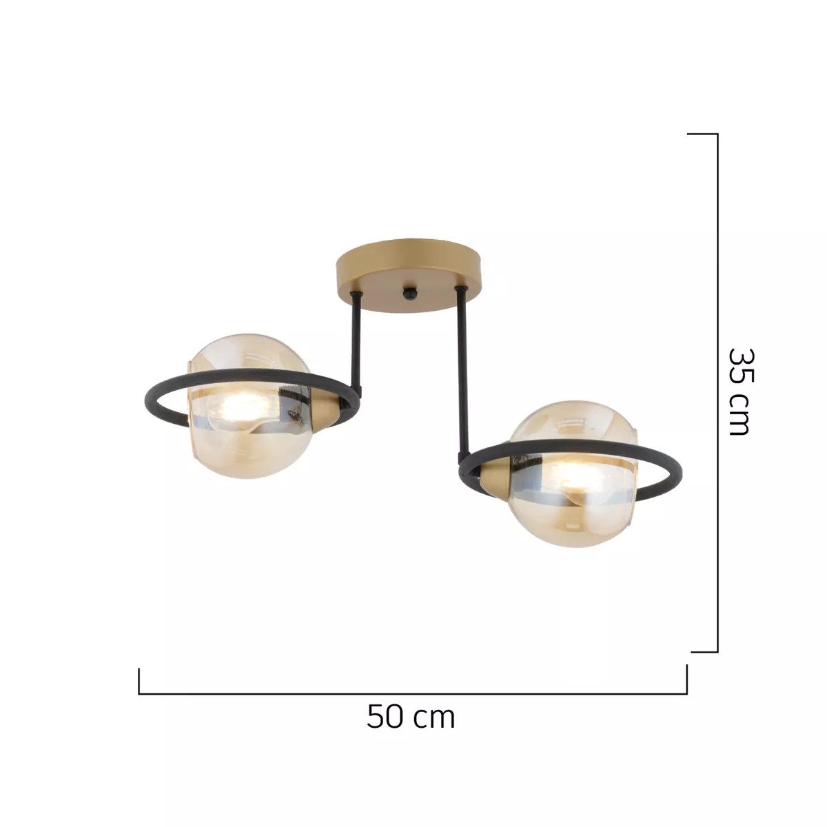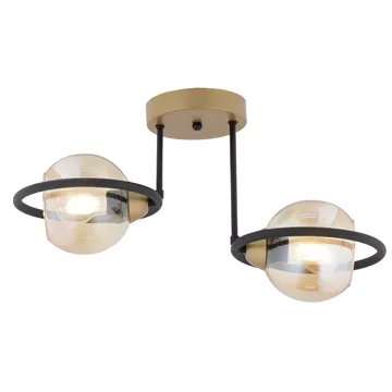 Φωτιστικό Κρεμαστό ArteLibre CORVUS Δίφωτο Μαύρο/Χρυσό Μέταλλο/Γυαλί 50x35cm