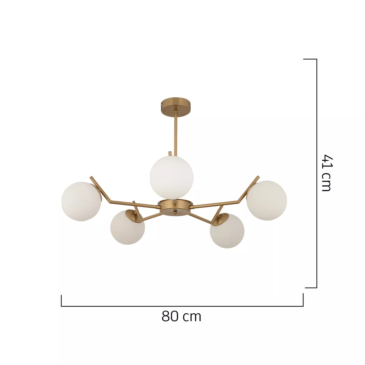 Φωτιστικό Κρεμαστό ArteLibre CRATER Πεντάφωτο Χρυσό/Λευκό Μέταλλο/Γυαλί 80x41cm