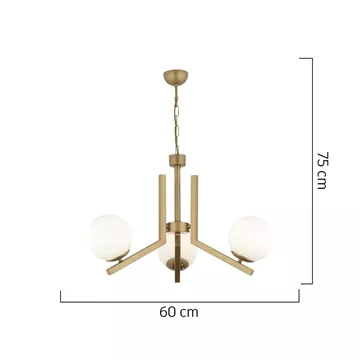 Φωτιστικό Κρεμαστό ArteLibre DORADO Τρίφωτο Χρυσό/Λευκό Μέταλλο/Γυαλί 60x75cm
