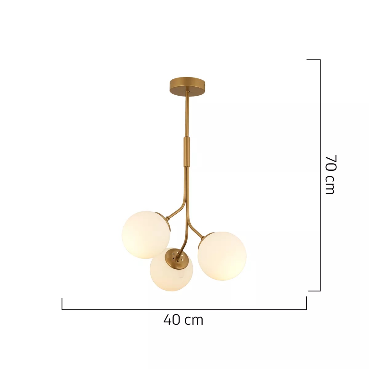 Φωτιστικό Κρεμαστό ArteLibre MENSA Τρίφωτο Χρυσό/Λευκό Μέταλλο/Γυαλί 40x70cm