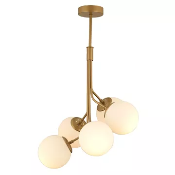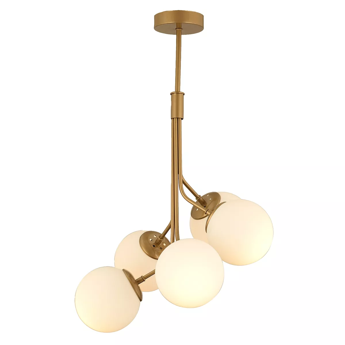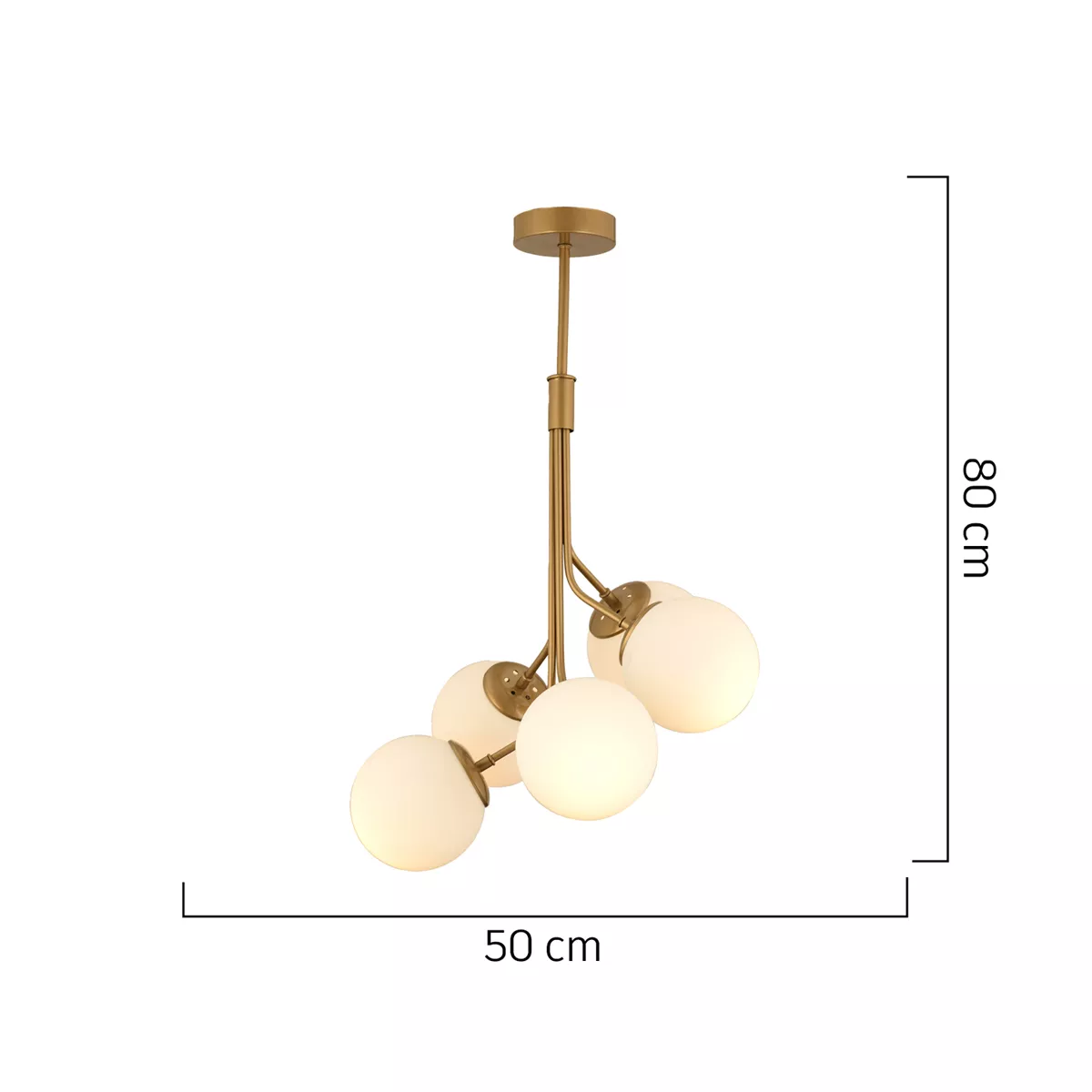 Φωτιστικό Κρεμαστό ArteLibre MENSA Πεντάφωτο Χρυσό/Λευκό Μέταλλο/Γυαλί 50x80cm