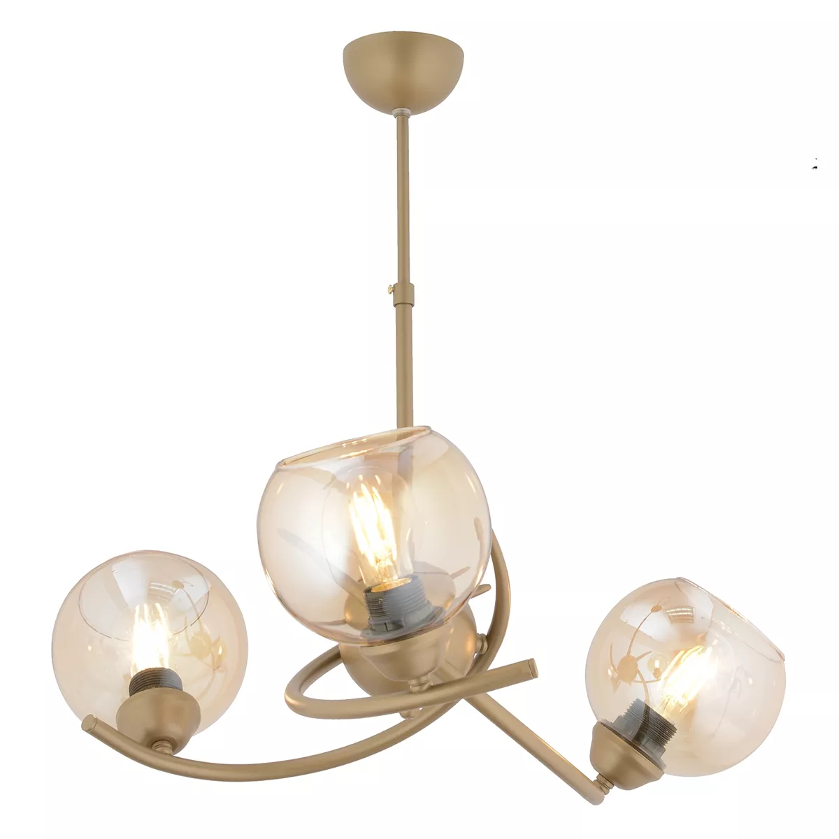 Φωτιστικό Κρεμαστό ArteLibre OCTANS Τρίφωτο Χρυσό/Μελί Μέταλλο/Γυαλί 60x60cm