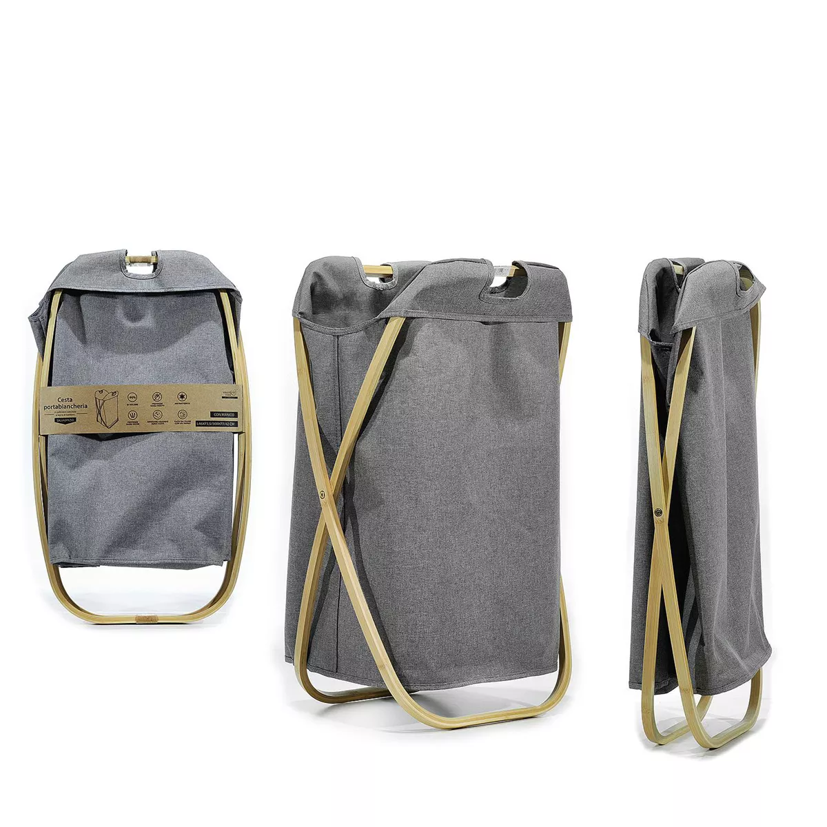 Καλάθι Απλύτων Πτυσσόμενο Με Polyester 600D Θήκη Γκρι/Φυσικό Ύφασμα/Ξύλο 46x36x72cm