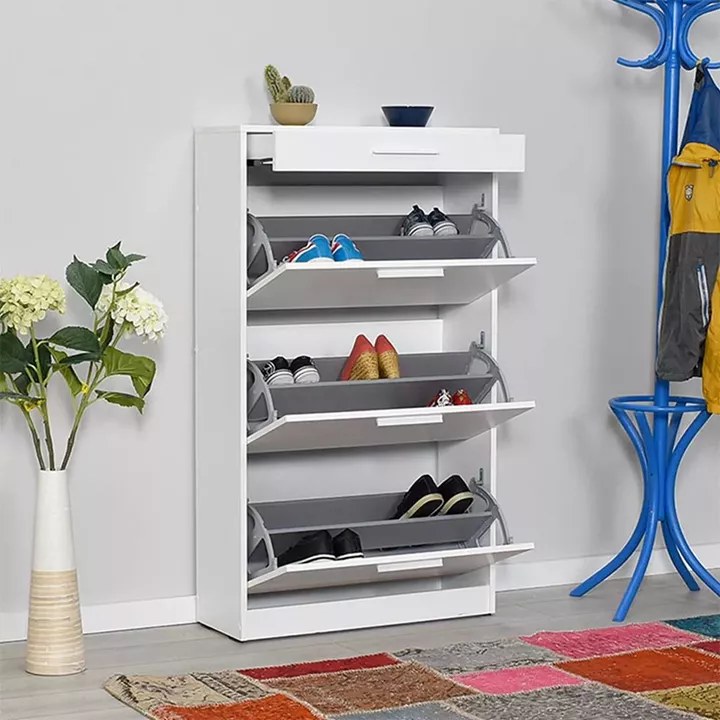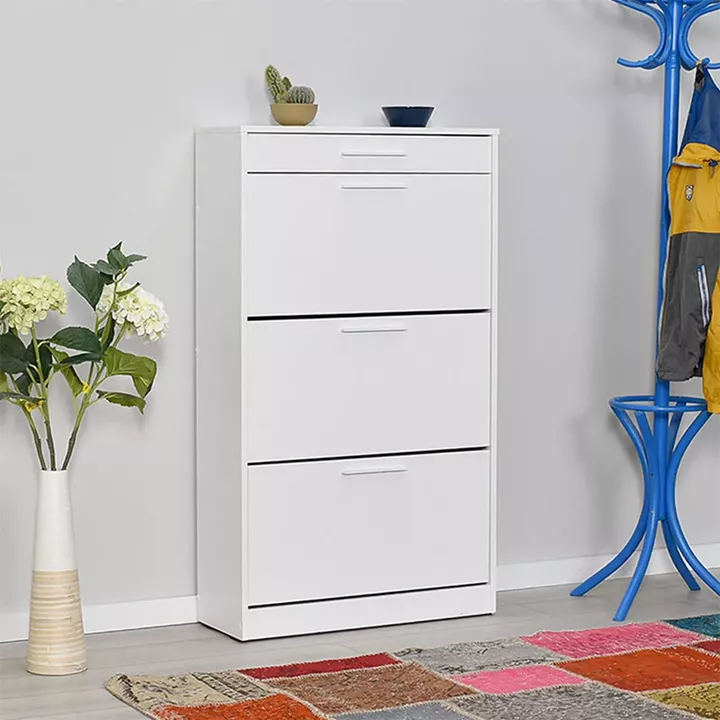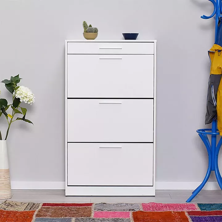 Παπουτσοθήκη μελαμίνης Flat Megapap 18 ζεύγων σε χρώμα λευκό 75x29x128εκ.