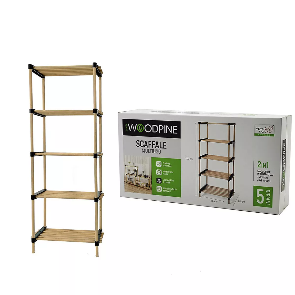 Ραφιέρα Επιδαπέδια Αρθρωτή Με 5/3+2 Ράφια Φυσικό Ξύλο 48x28x130cm