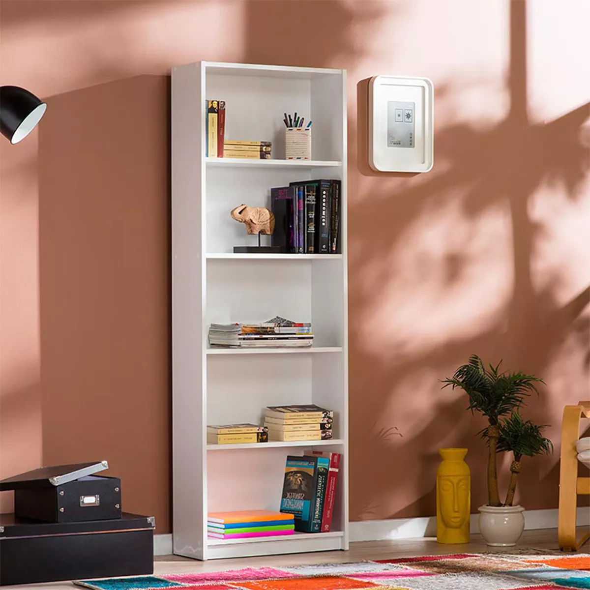 Βιβλιοθήκη μελαμίνης Max Megapap σε χρώμα λευκό 58x23x170εκ.