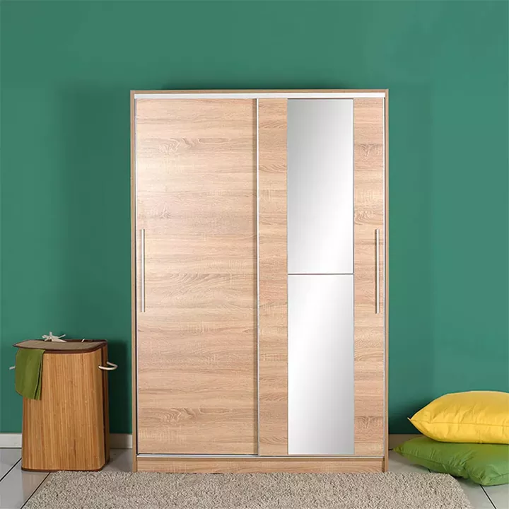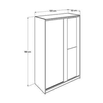 Ντουλάπα ρούχων Slide Megapap δίφυλλη - συρόμενες πόρτες - καθρέφτης - σε sonoma 120x52x182εκ.