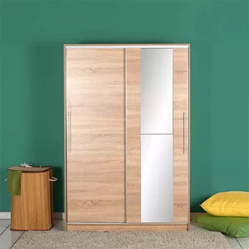 Ντουλάπα ρούχων Slide Megapap συρόμενη με καθρέφτη σε χρώμα sonoma 120x52x182εκ.