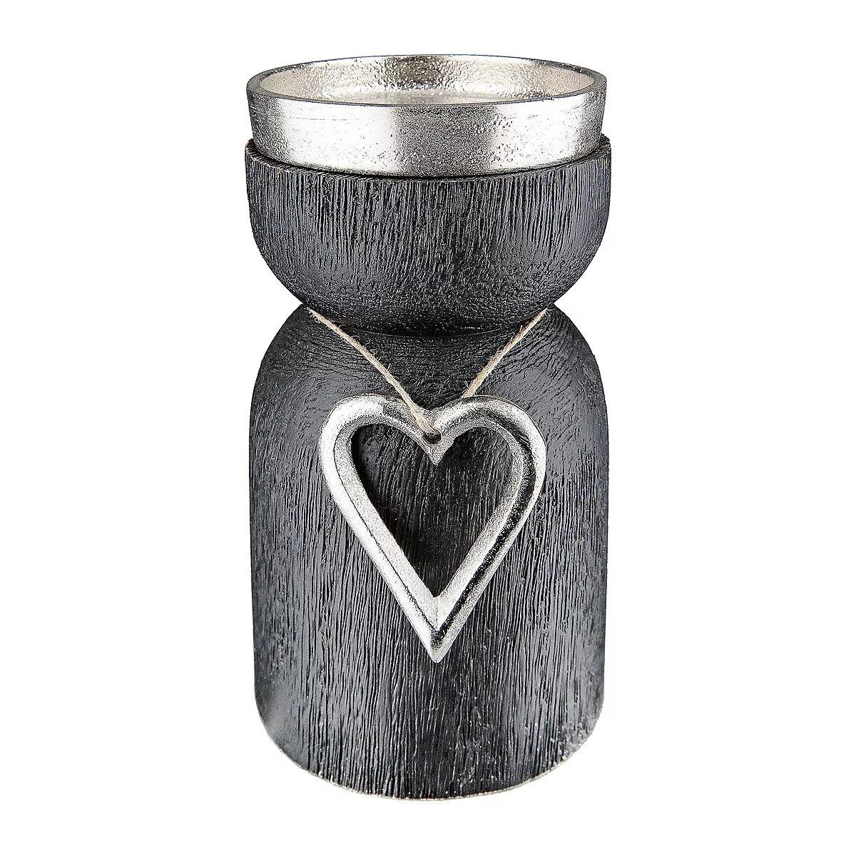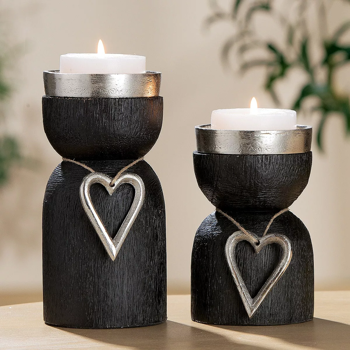 Κηροπήγιο Με Καρδιά ArteLibre Μαύρο Αλουμίνιο/Ξύλο Φ8x17cm