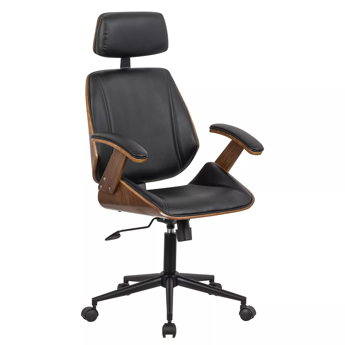 Καρέκλα Γραφείου Διευθυντή ArteLibre MILIUS Μαύρο/Καφέ Ξύλο/PU/Αλουμίνιο 53x56x73-83cm