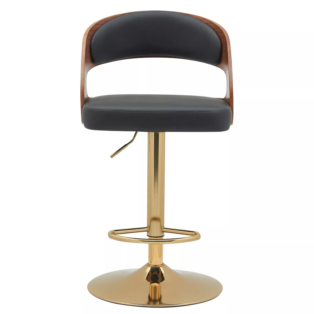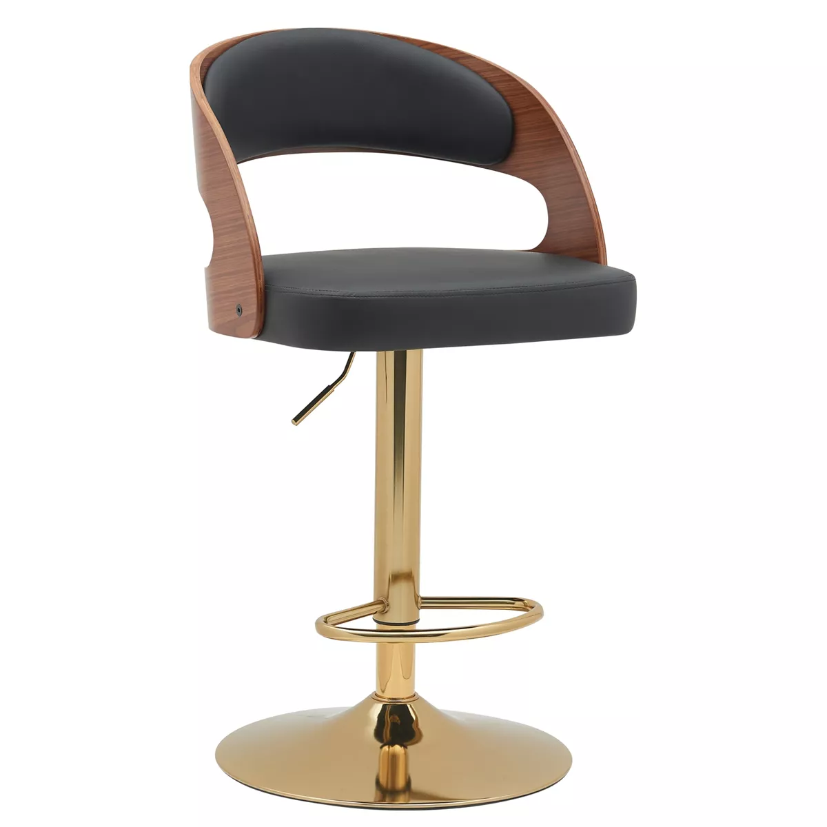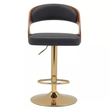 Σκαμπό Bar ArteLibre SINDRI Μαύρο/Καφέ Ξύλο/PU/Αλουμίνιο 48x49x91-112cm