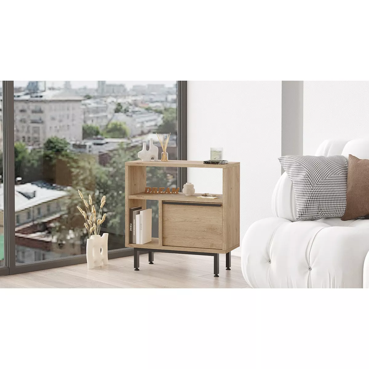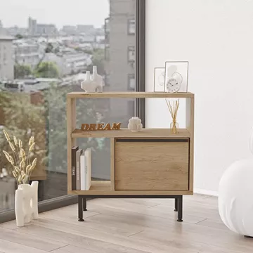 Βοηθητικό Τραπεζάκι ArteLibre SHALDON Φυσικό Μοριοσανίδα/Μέταλλο 60x25.5x60cm