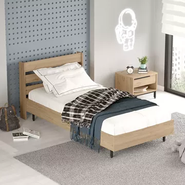Κρεβάτι ArteLibre SUFFOLK Φυσικό Μοριοσανίδα/Μέταλλο 108.5x205.6x86cm