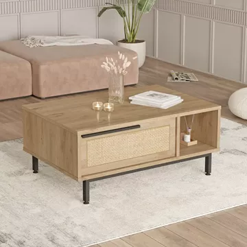 Τραπεζάκι Σαλονιού ArteLibre CORNWALL Φυσικό Μοριοσανίδα/Μέταλλο 90x60x37.6cm