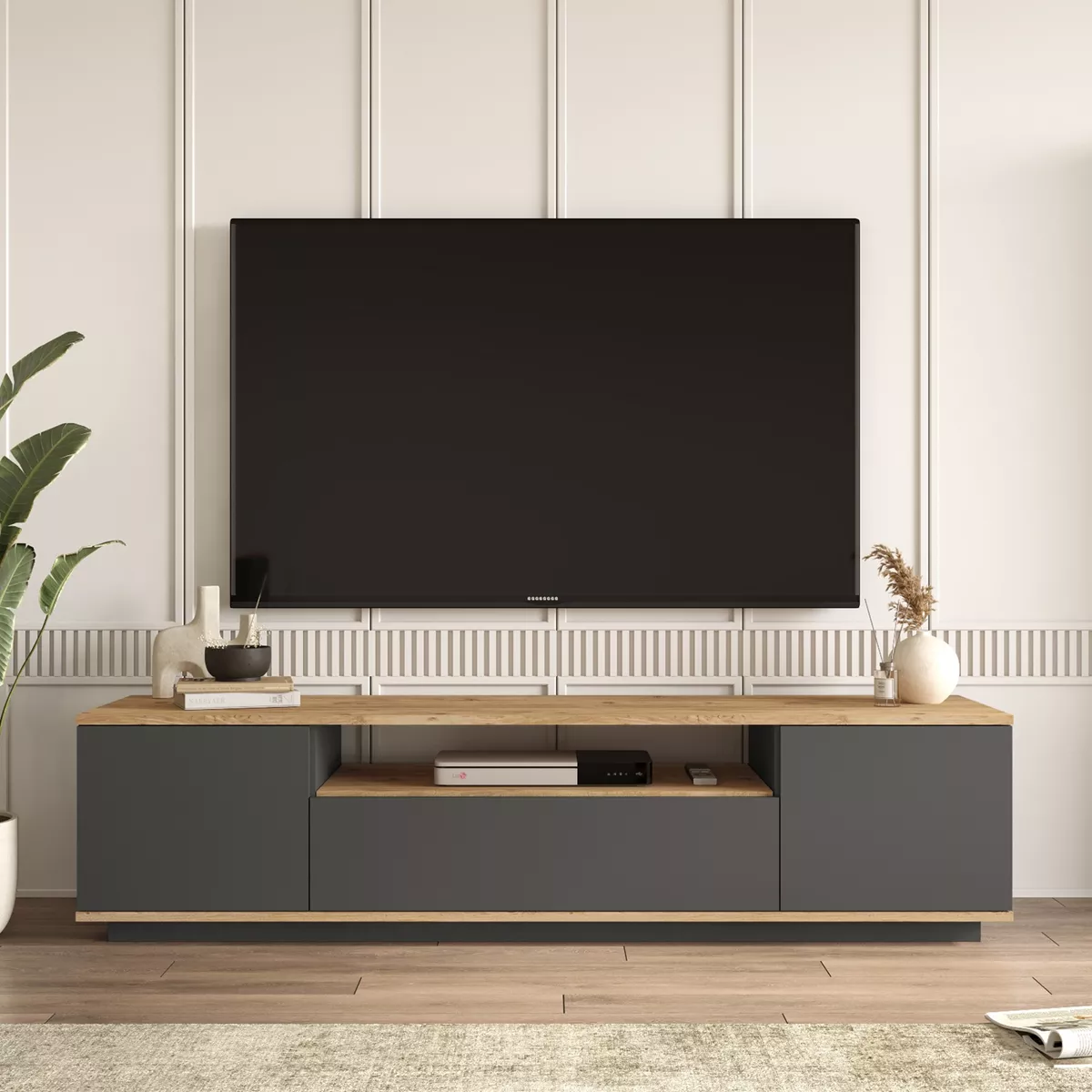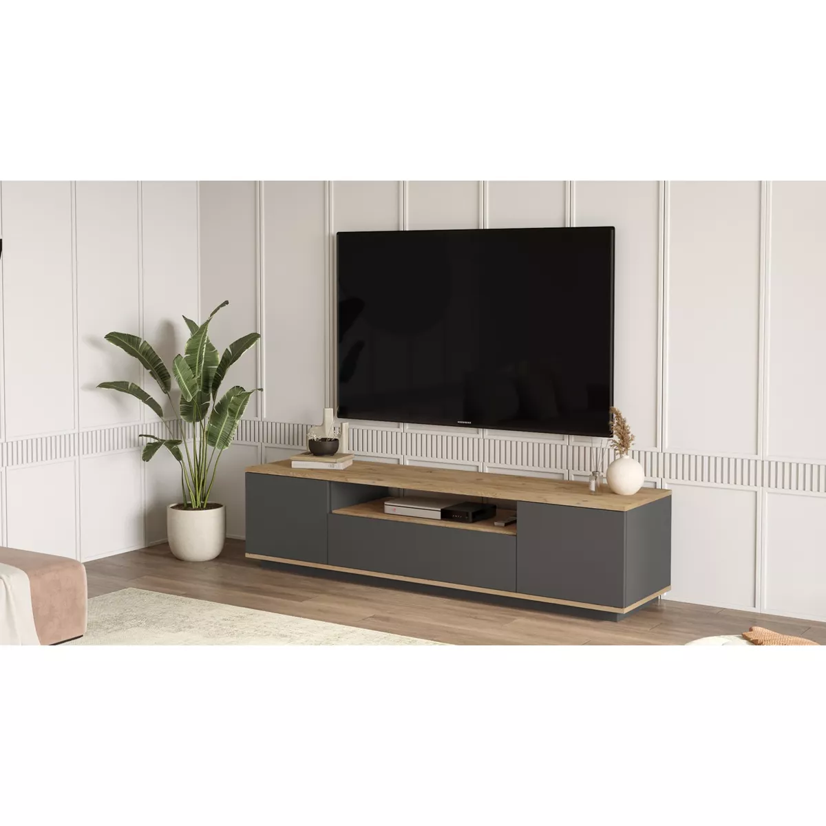 Έπιπλο Τηλεόρασης ArteLibre CHILHAM Φυσικό/Ανθρακί Μοριοσανίδα 180x44.5x44.6cm