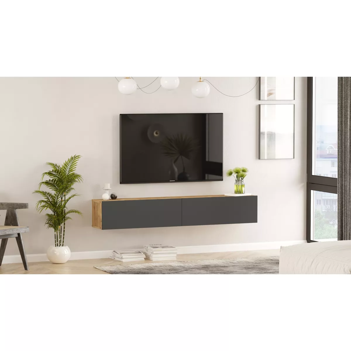 Έπιπλο Τηλεόρασης ArteLibre KENT Πεύκο/Ανθρακί Μοριοσανίδα 180x31.6x29.6cm