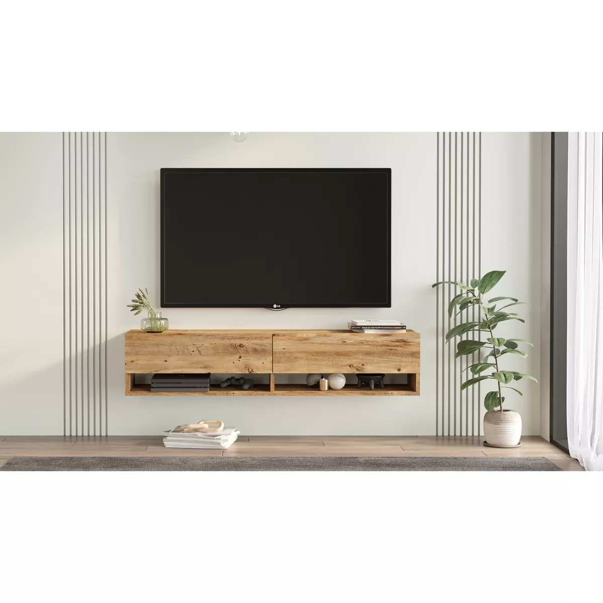 Έπιπλο Τηλεόρασης ArteLibre SOLVA Πεύκο Μοριοσανίδα 140x31.6x29.6cm