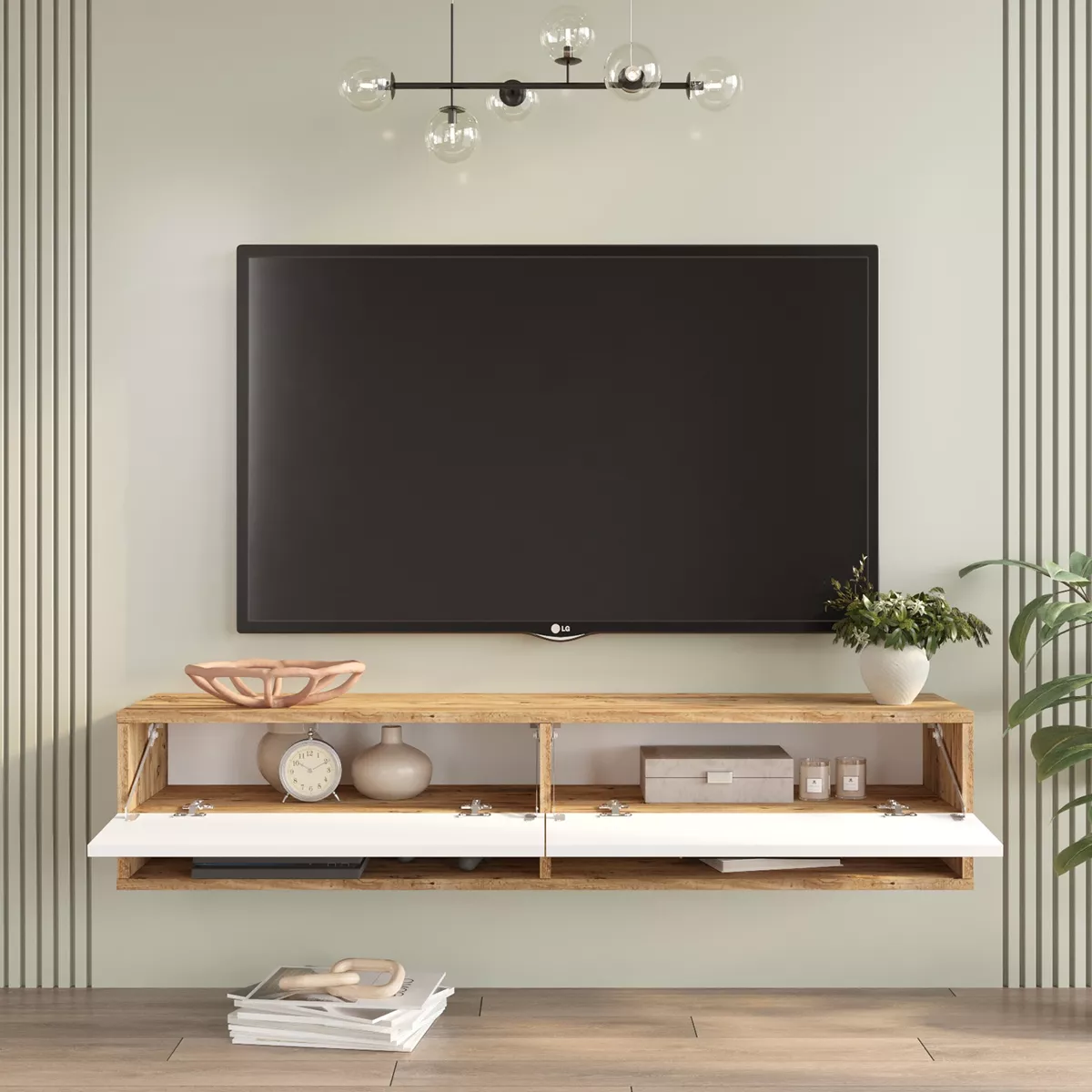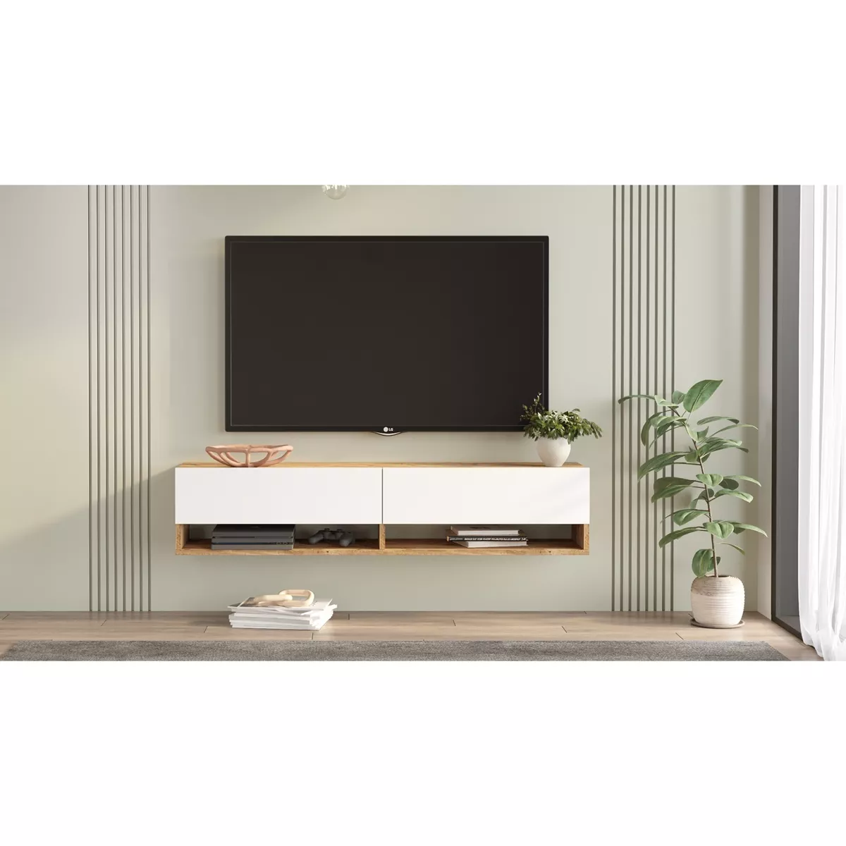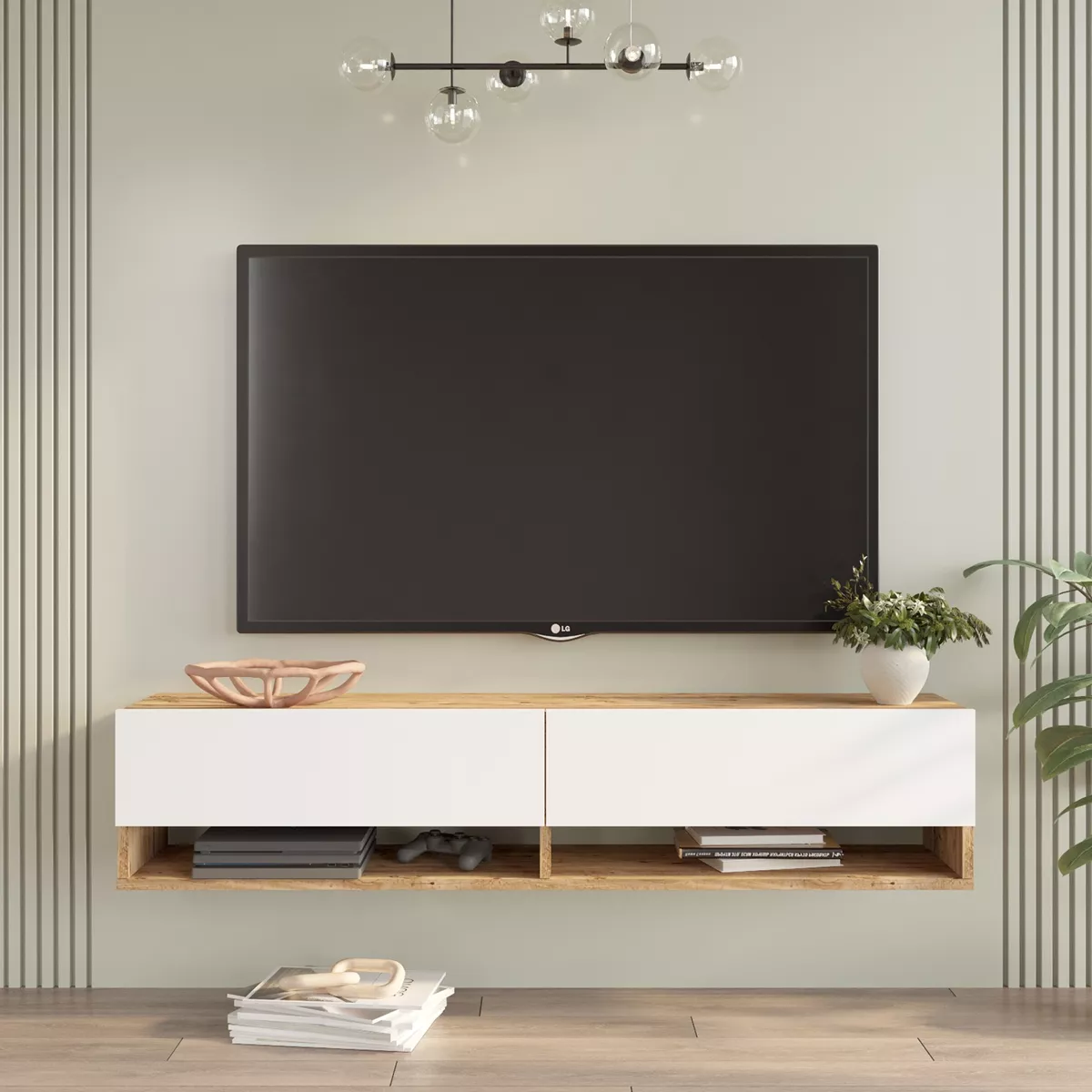 Έπιπλο Τηλεόρασης ArteLibre SOLVA Πεύκο/Λευκό Μοριοσανίδα 140x31.6x29.6cm