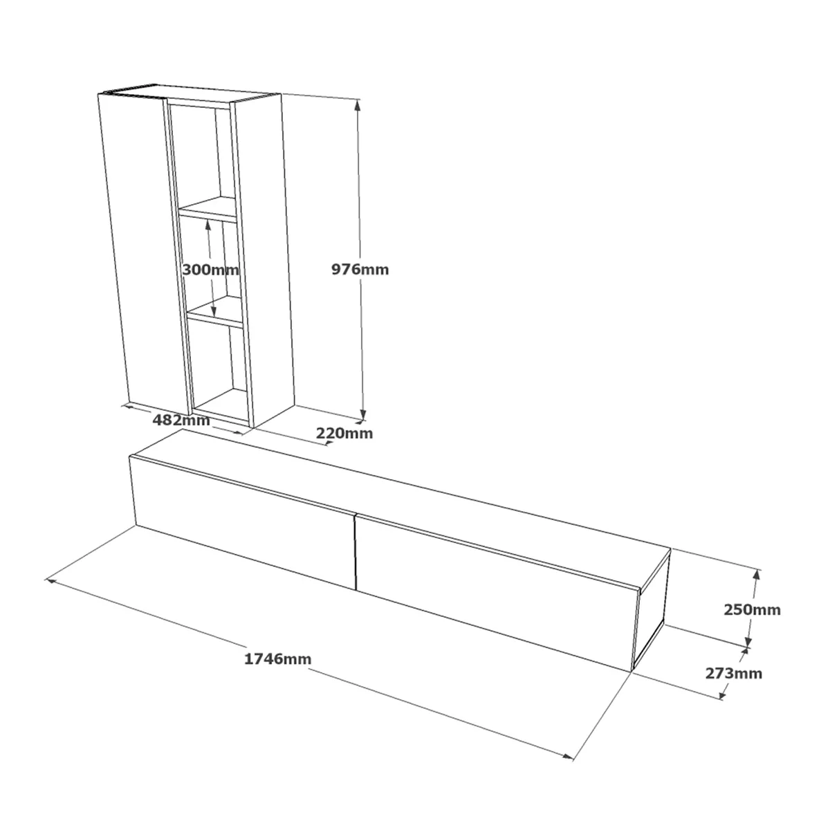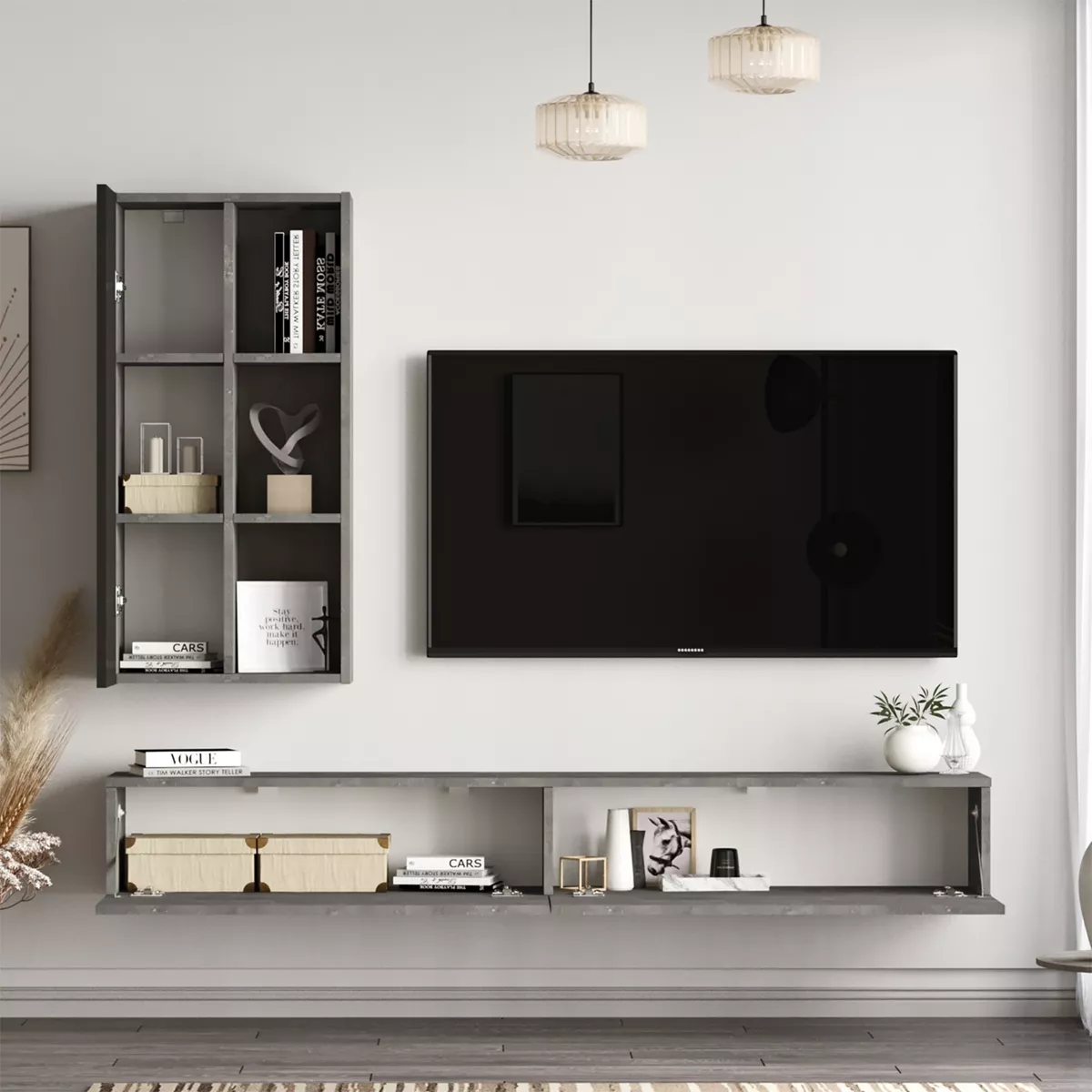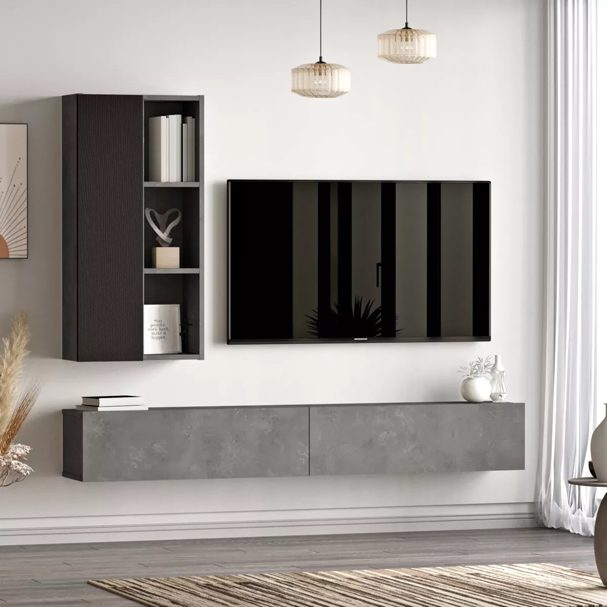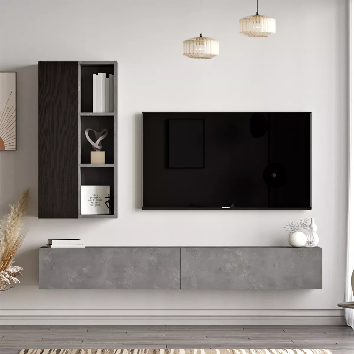 Σύνθετο ArteLibre ANERLEY Σκούρο Καφέ/Γκρι Με Εφέ Τσιμέντο Μοριοσανίδα 174.6x27.3x25cm/48.2x22x97.6cm