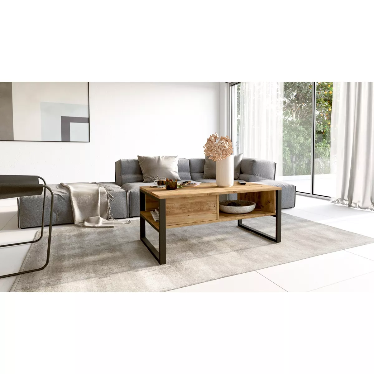 Τραπεζάκι Σαλονιού ArteLibre ALPERTON Φυσικό Μοριοσανίδα/Μέταλλο 100x59.7x44.4cm