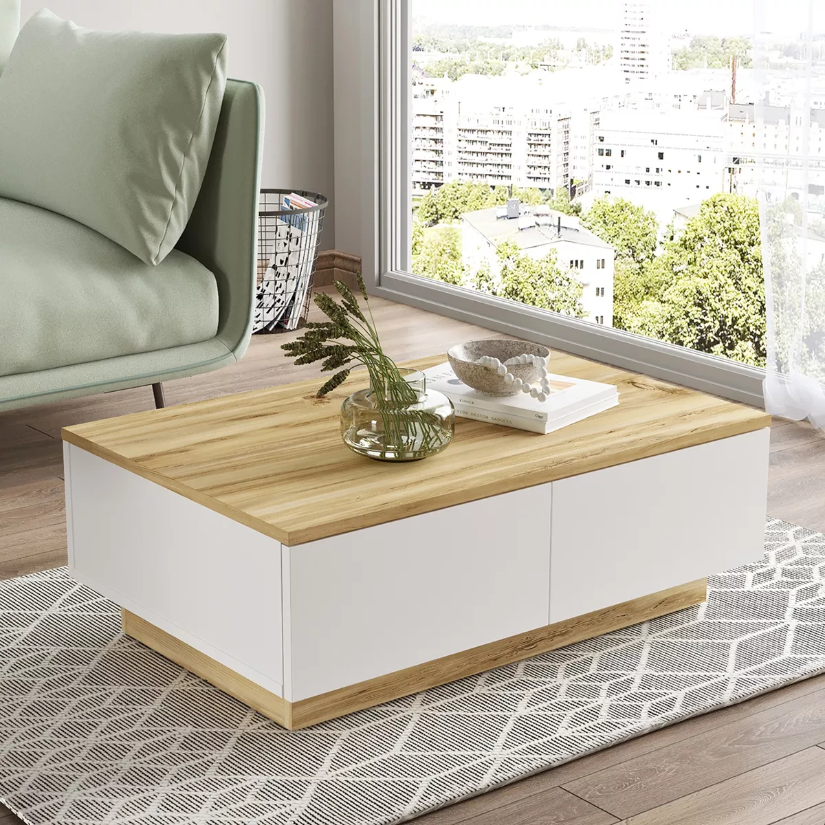 Τραπεζάκι Σαλονιού ArteLibre ARNOS Λευκό/Φυσικό Μοριοσανίδα 90x60x31.6cm